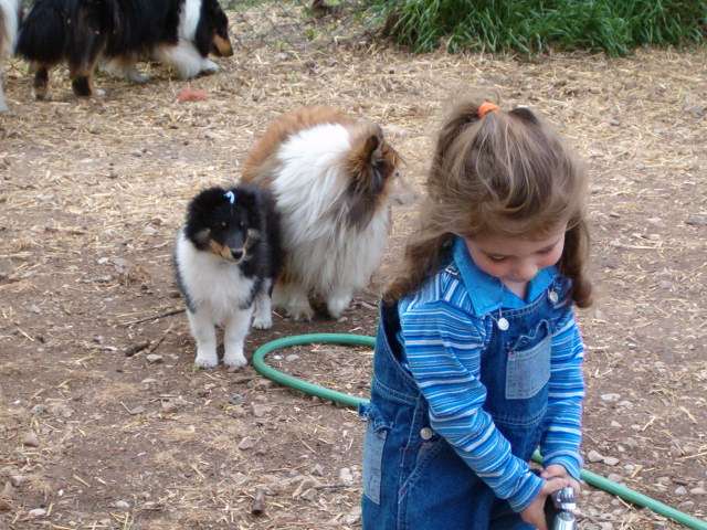 Jessica, Travis & cousin Haley playing with pups and dress up.